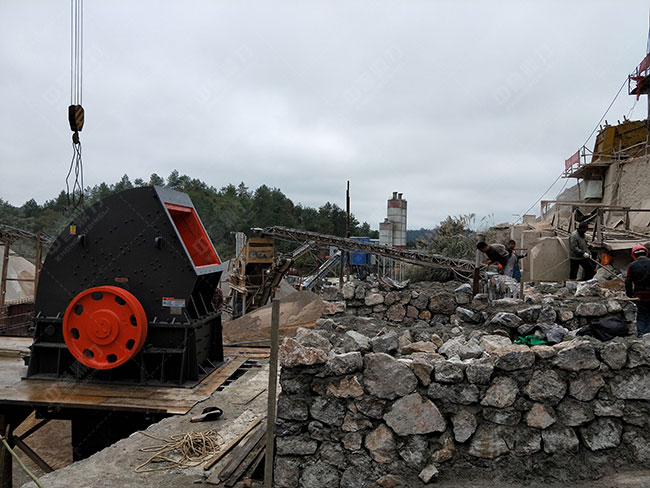 該款重錘破抗壓受力性能不大于200MPa,應用物料200好幾種,常見的有石灰巖、青石、煤矸石、大理石、磚渣、商砼塊等,粉碎物料不用初步破碎以及二破,可一次性將粒度在1000毫米的大巖石粉碎到50毫米以下,機械占有能耗較低、投資少的亮點。請看一個真實生產案例: