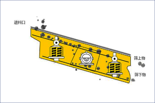 上圖為yah2460型圓振動篩結構圖和工作示意圖,從結構圖可以看到,該設備由箱體、支架、支腿、電機、底座、篩網、支腿等部分組成,篩面安裝傾角建議在20度,傾角過大物料篩分不干凈,傾角過小篩分效率過低,建議在廠家安裝人員指導下合理選擇。篩孔大小也可以根據要處理物料大小進行定制。