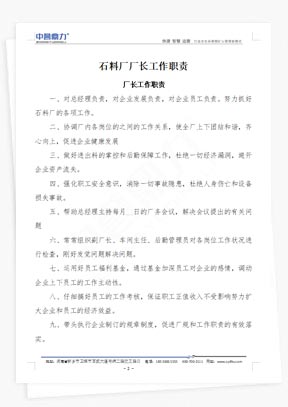 (1)全面負責(zé)石子廠管理工作,確保生產(chǎn)、安全、環(huán)保等各項工作順利進行;