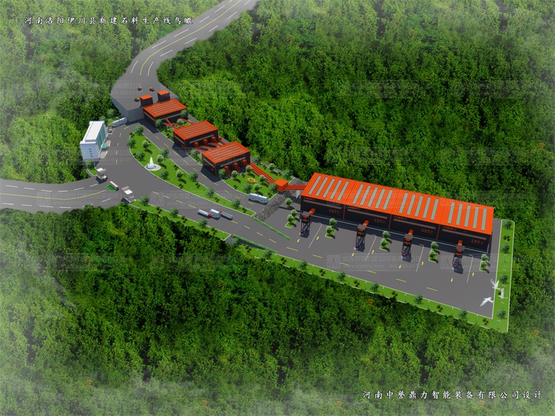 中譽鼎力生產(chǎn)線進料倉設(shè)置,可以同時滿足4輛60噸以上的礦車卸料;進料倉上部設(shè)置除塵器收塵,集中吸收并循環(huán)利用。