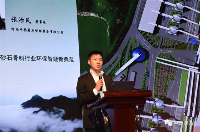 河南中譽鼎力智能裝備有限公司董事長張治民、副總經(jīng)理原文秋受邀出席會議。張治民董事長發(fā)表了《打造內(nèi)砂石骨料行業(yè)環(huán)保智能新》的主旨演講,以公司新建時產(chǎn)3000噸環(huán)保智能砂石骨料生產(chǎn)線為實例,分享了中譽鼎力砂石骨料生產(chǎn)線創(chuàng)新技術(shù)應(yīng)用成果及傳統(tǒng)生產(chǎn)線落后技術(shù)的解決方案,與行業(yè)內(nèi)、學(xué)者進行交流和探討。
