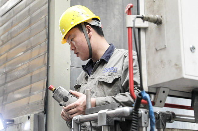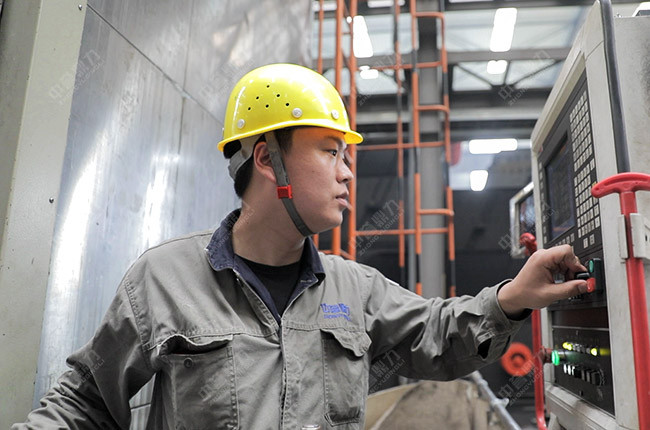 在中譽鼎力智能化一體生產車間,數控鏜銑床發揮適應性強、加工精度高、加工質量穩定和生產效率高等優點,為公司破碎設備的高品質制造、高性能運轉提供了有力保障。這款高精端加工設備得以操作運行,離不開生產部機加工班組鏜銑工韓俊的功勞。
