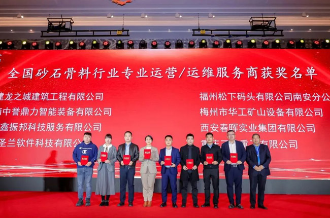 表彰先進,樹立典范,推動砂石行業向更高層次發展,在2023年度砂石及裝備行業表彰會上——河南中譽鼎力智能裝備有限公司喜獲全國砂石骨料行業“專業運營/運維服務商”和“優秀裝備供應商”兩項榮譽表彰;中譽鼎力合作企業甘肅平涼新世紀建材、河南鶴壁淇縣恒源礦業、重慶中材參天建材等相關項目獲評“2020年度綠色砂石基地”!
