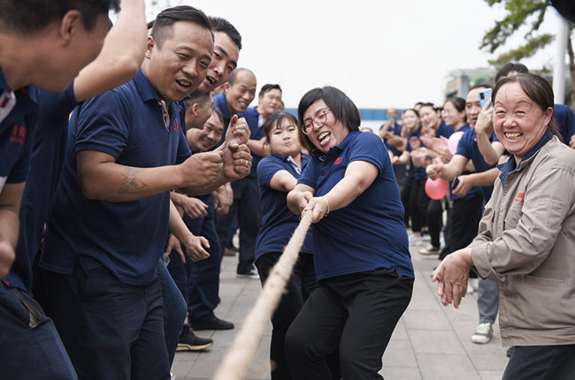 在張志宇常務副總經理的發號施令下,拔河大對抗激烈上演。值得一提的是,以營銷為主組成的女子拔河團隊在比賽中不遑多讓,體現了巾幗不讓須眉的氣勢。