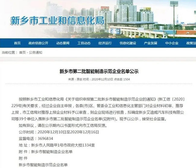 按照新鄉市工業和信息化局《關于組織申報批新鄉市智能制造企業的通知》(新工信〔2020〕229號)有關要求,經過企業自主申報,各縣(市)區、管委會工業和信息化主管部門對企業材料初審、上報,市工信局對上報企業材料予以審查,到企業現場進行核查,擬39個單位入圍新鄉市批智能制造企業名單。