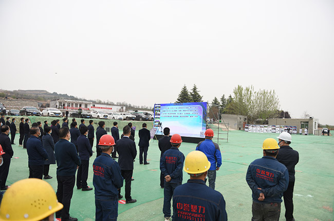 活動當天,作為項目EPC總承包服務商,中譽鼎力大區總經理郭鵬飛、陜西服務中心銷售經理陳玲慶和中譽鼎力施工安裝隊工人代表參與開工儀式。