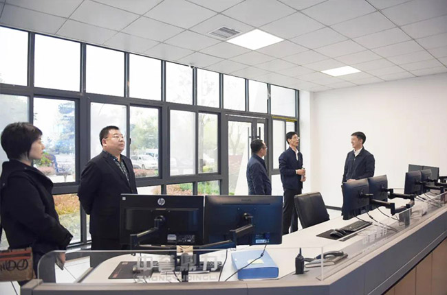 胡會長一行先來到中譽鼎力智能裝備有限公司,先后參觀了公司發展歷程文化墻、礦山管理云數據中心、多位一體循環建材產業園項目沙盤等,對中譽鼎力主營業務、創新發展情況有了進一步了解。