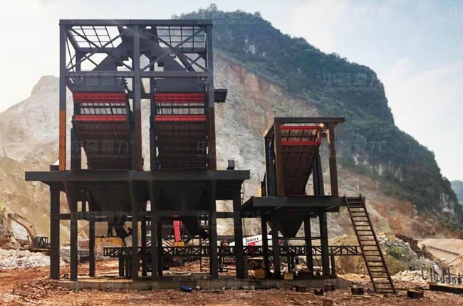 在此背景下,天等縣廣西榮達路橋有限公司龍文采石廠與中譽鼎力合作,新建一條年產250萬噸環保智能砂石骨料生產線。目前,該項目土建施工正在火熱開展,主設備已進場安裝。
