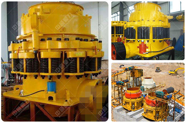 圓錐式石子粉碎機(時產200噸,Φ1750、Φ2200型號),下料粒度不過230毫米、成品粒度10-50毫米