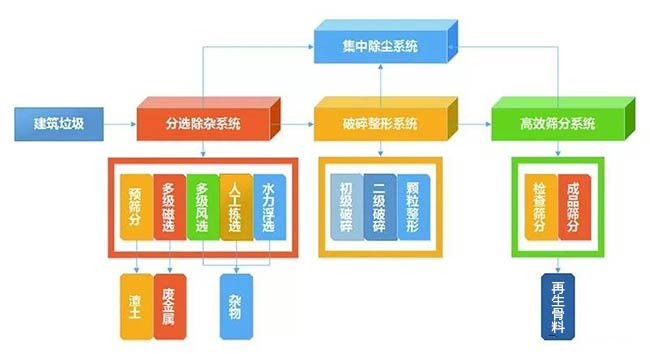 根據(jù)裝修垃圾、拆遷廢料、工程渣土和建筑泥漿等建筑垃圾分類進(jìn)行相對應(yīng)的分揀處理;