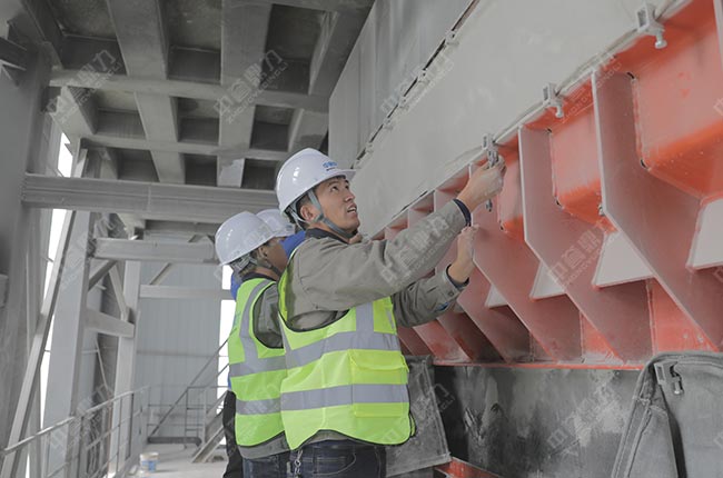 在現場,售后服務團隊各司其責,分別對這條時產1500噸砂石生產線的給料機、破碎機、制砂機、振動篩、減速機、輸送設備、散裝機、除塵設備、拉鏈機、電氣設備等進行細致檢查,并做詳細記錄。同時也向項目相關負責人就設備的日常使用保養、注意事項提出了建議。