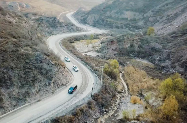 山路蜿蜒,售后車輛持續前行