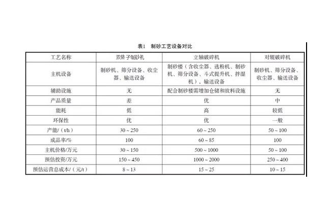 通過對以上3種制砂工藝設備優缺點進行對比(見下表):