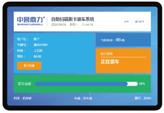 實時查看裝車狀況和訂單信息,司機可以通LED屏實時查看到裝車的石料種類及價格,重量的實時信息,石子廠管理人員在中控室也可以同步看到裝車車輛車牌號、石料種類、重量等信息。